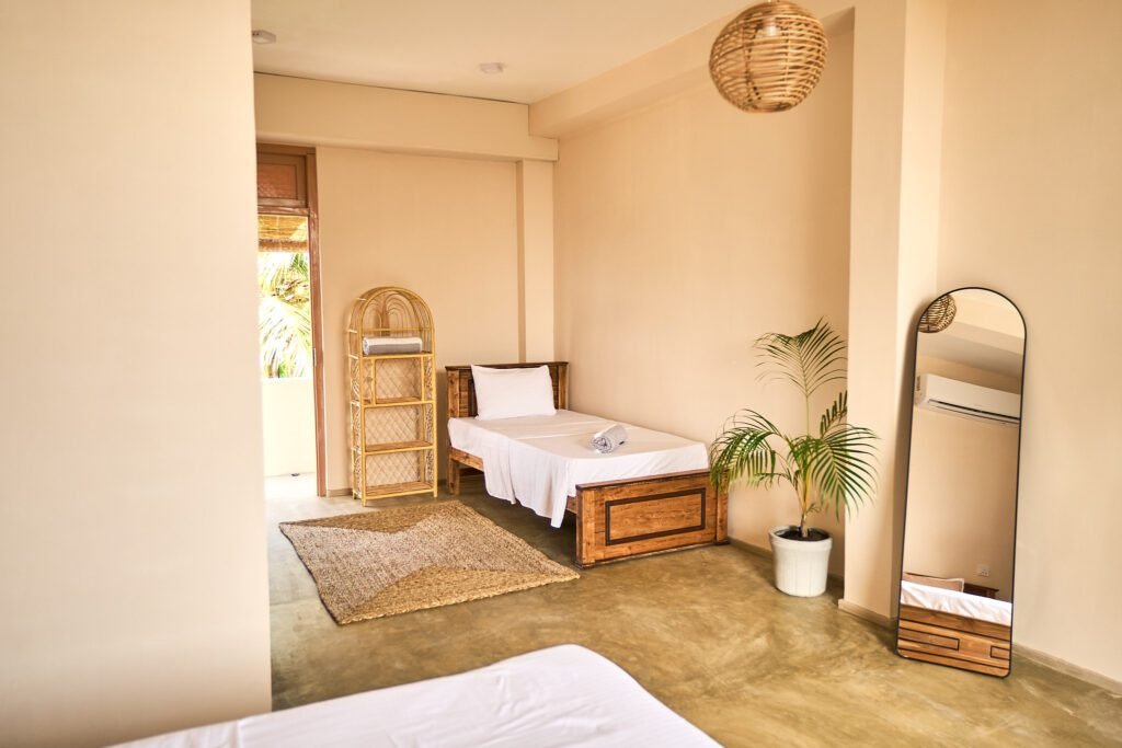 Our rooms are thoughtfully designed to offer comfort, simplicity, and a relaxed atmosphere. Natural light, soft textures, and practical amenities create the perfect place to recharge between surf sessions and adventures.